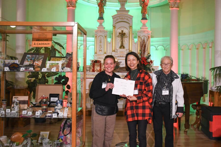 Geneviève Martel (à gauche) : Présidente d’honneur 2026, Juan He (au centre) : Présidente d’honneur 2025 et Lise Thibodeau (à droite) : Coordonnatrice de l’événement.