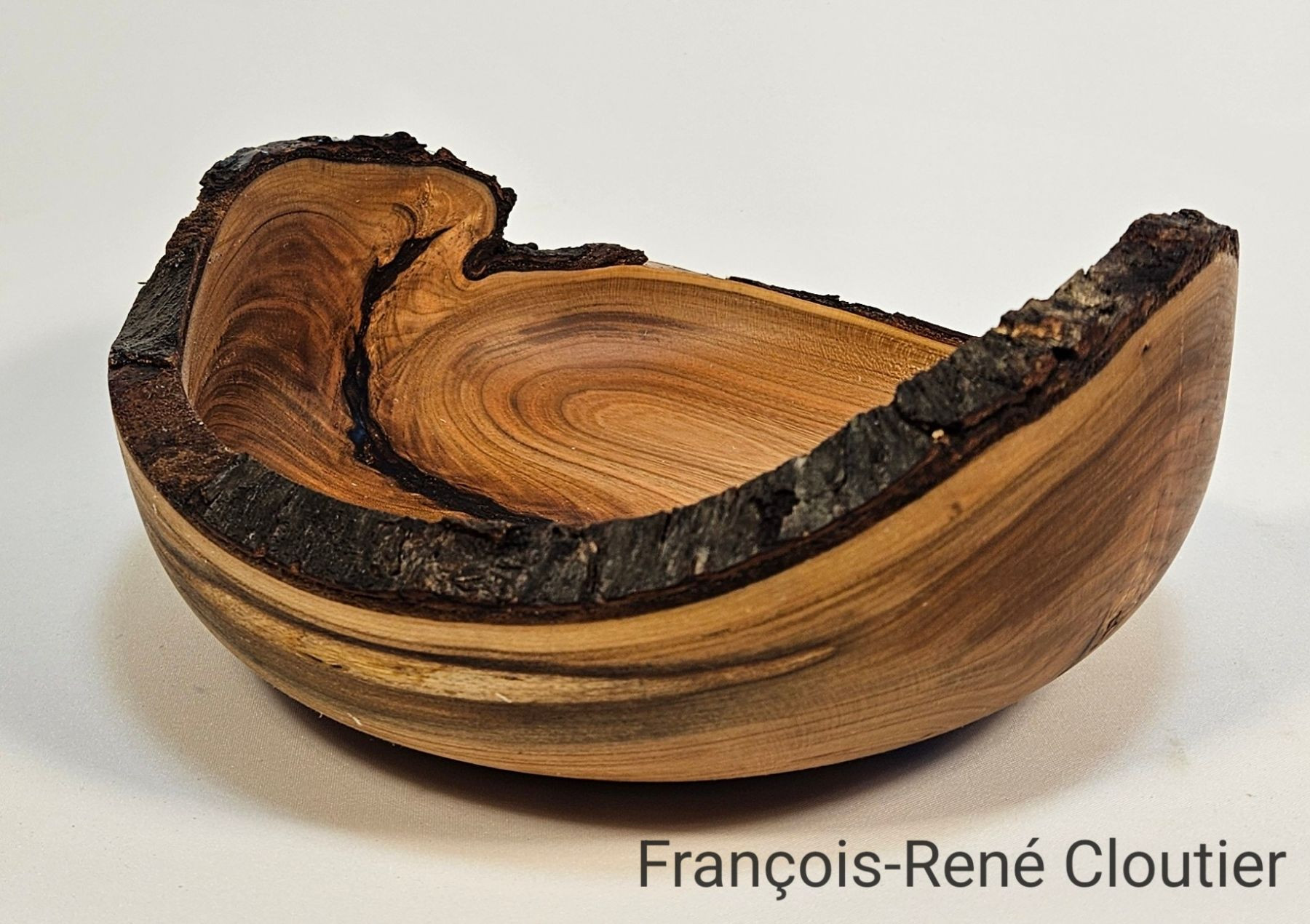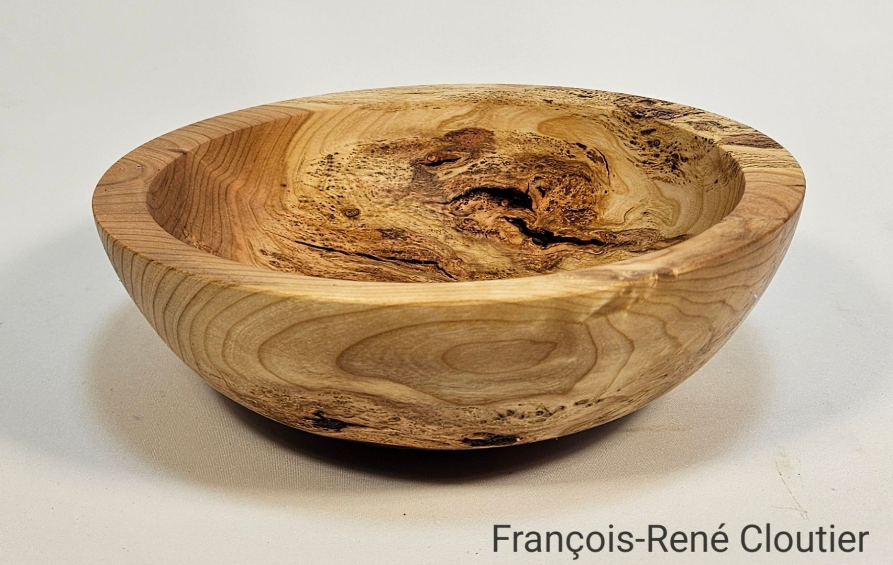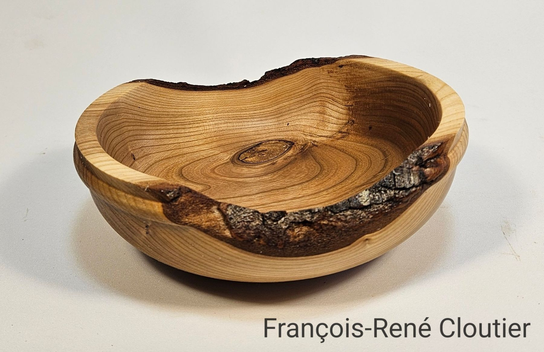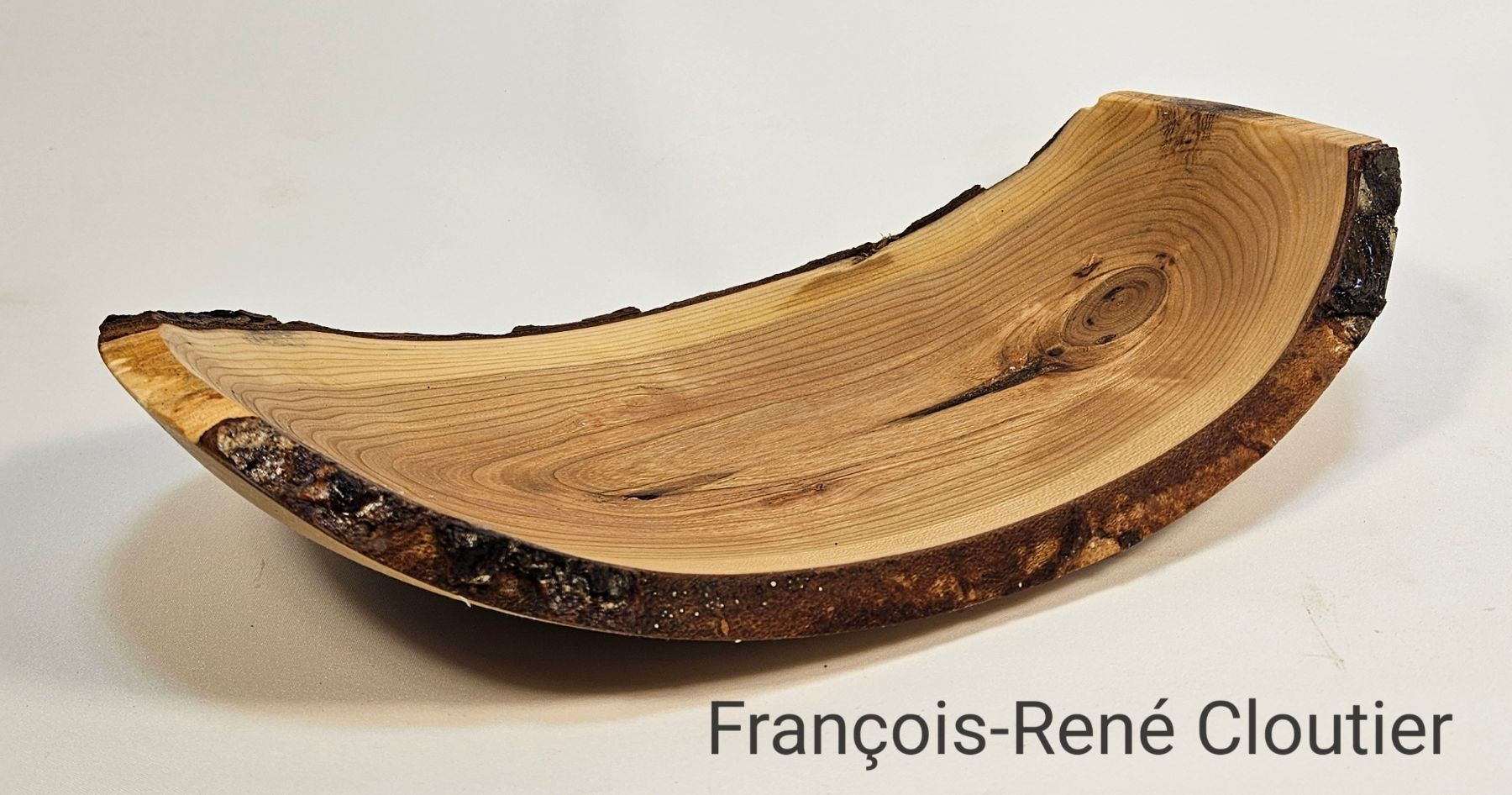 Mes pièces tournées sont fait à 99% avec du bois indigène du Québec. J’emploie différentes techniques de tournage. Des pièces variées en bois telles que des assiettes, bols, plats, boules de noël, stylos, bouchons à vin, horloges, urnes.